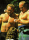 Hjalti Arnason and Kaz grapple in a bear hug |